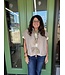 -Front Ties: Instead of traditional buttons or a zipper, the vest closes at the front with natural plaid fabric ties. These ties are likely made from a flannel or cotton material in earth-toned plaid—think soft beiges, browns, muted greens, or creams—that contrast subtly with the ivory Sherpa. The ties can be knotted or bowed, adding a touch of homespun detail and rustic style.