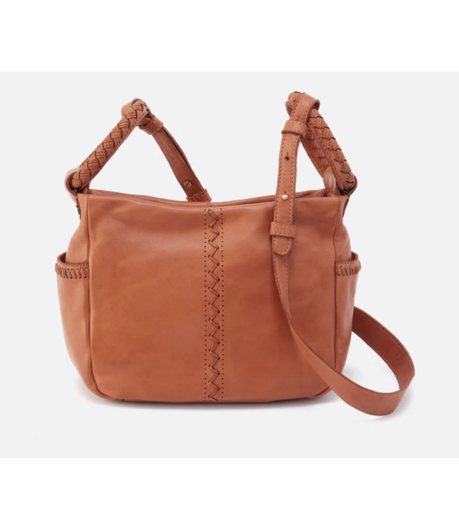 A classic bucket shaped crossbody with exterior slip pockets.