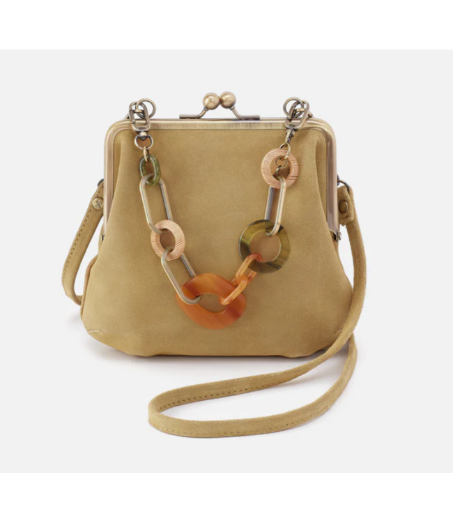 A vintage-inspired crossbody, now crafted in suede with beaded chain swag.