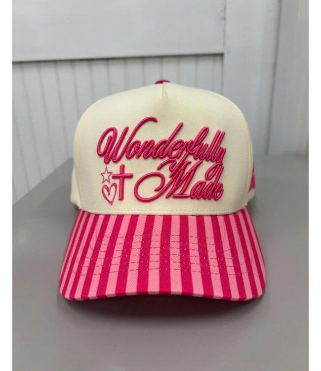 Designed with a soft cream crown and a vibrant pink striped bill, this hat blends faith-inspired messaging with modern boutique style. The raised pink embroidered lettering adds eye-catching texture, while the breathable trucker design keeps you comfortable all day long.